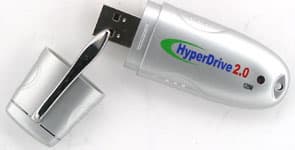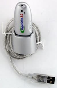 А еще с этим, давно знакомым накопителем, Hyper Drive 2.0 роднит и комплект поставки: сам накопитель, CD с ПО и документацией (по всей линейке — и для USB 1.1, и для 2.0), шнурок для его ношения на шее, короткий USB-кабель и док с уже достаточно длинным кабелем.