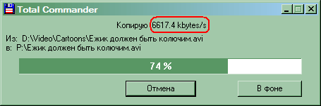 Вопрос крайне интересный. Опробовав несколько способов записи, можно прийти к выводу, что ошибка кроется где-то в недрах Total Commander, а совсем не во флэшке или ее драйверах: ведь последняя версия FAR или «Проводник» работают нормально, не опровергая результатов низкоуровневых тестов. Однако многим такой вариант развития событий и в голову-то не приходил: много лет пользовались TC, он полностью удовлетворял потребности, становясь от версии к версии все лучше и лучше, а флэшку-то в первый раз такую увидели :) Опять же: читается все с той скоростью, как и положено, а подобный дисбаланс скорости чтения и записи уже встречался при использовании контроллеров от Prolific, так что можно заподозрить и OTi в таком же поведении. Что ж — фанатов ТС спешу успокоить: виновата программа, однако виновность у нее не врожденная, а, скажем так, результат «плохого воспитания» под которым можно понимать процесс настройки после установки на компьютер. Вот многие ли настраивают хоть что-то, кроме внешнего вида? А зря. В качестве доказательства — пишем тот же файл на тот же накопитель той же программой, но после затраты секунд 10 времени на изменение пары параметров по-умолчанию.