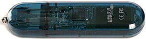 Дизайн прост до безобразия. Можно даже сказать, отсутствует — обычный «стик» из полупрозрачной пластмассы, размерами 76,4×19,4×10,2 мм. Больше всего он похож на PQI Traveling Disk 2.0, только клипсы для крепления на карман нет, а вместо дырки для крепления шнурка (единственное, что входит в комплект поставки — даже USB-удлинителя нет) прилеплена маленькая пимпочка — хоть какой-то элемент дизайна :) Полупрозрачность корпуса позволила легко опознать используемый контроллер — им оказался KTC-FC1325N. Ранее мы с контроллерами от Key Technology Corp. не сталкивались (а если и сталкивались, то их не опознали), так что накопитель интересен не только сам по себе, но и как официальный дебют КТС в наших тестах.