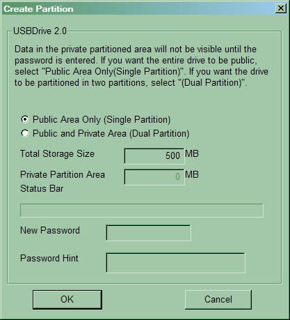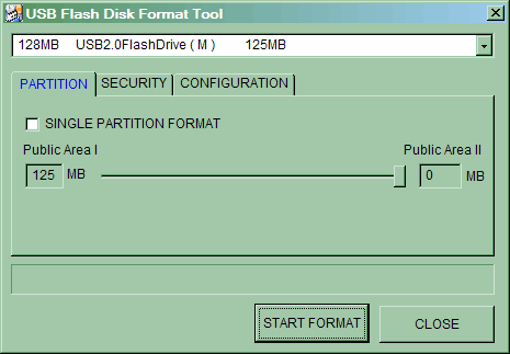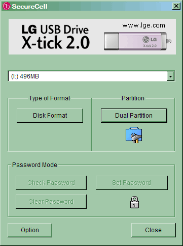 SecureCell позволяет выполнять следующие операции: разбиение флэшдрайва на разделы, форматирование одного из них или обоих, установка и снятие пароля с защищенной части.