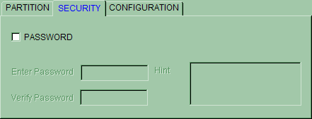 Защита настраивается как раз на второй вкладке. Все стандартно, так что в комментариях не нуждается. Для ввода пароля при работе, кстати, предназначена отдельная небольшая утилита, записываемая прямо на накопитель, то есть ничего устанавливать на компьютер при использовании защиты не нужно, что хорошо.