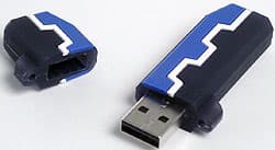 Вместо «типичного» исполнения (намертво закрепленный USB-разъем, при транспортировке закрываемый колпачком) в данном случае применен выдвижной разъем. Такая конструкция имеет как свои плюсы, так и минусы. К первым можно отнести компактность устройства (64×21×10 мм, 11 грамм), да и потерять колпачок, как это часто бывает, вам не удастся, по причине его отсутствия. Минусом же является наличие механического узла, надежность которого далеко не 100% — со временем, по отзывам, имеет тенденцию «разбалтываться», ненадежно фиксироваться в выдвинутом положении, а то и вообще ломаться. В общем, ничего вечного под Луной нет, так что, как всегда, приходится выбирать между компактностью, броским дизайном и надежностью. Как показывает практика, выбор неоднозначный — неплохо продаются флэшдрайвы разной конструкции.