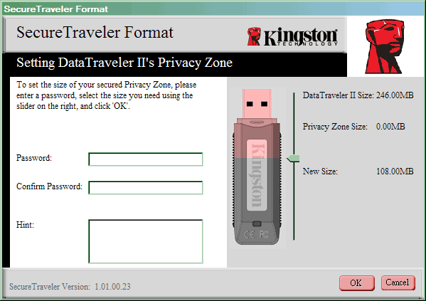 Все многообразие программного обеспечения заключается в этом случае в утилите Secure Traveler Format, записанной прямо на накопитель и предназначенной для разбиения накопителя на разделы. Со своей задачей справляется (позволяет создать защищенную область), имеет практически «канонический» вид и возможности, а больше о ней ничего и не скажешь.