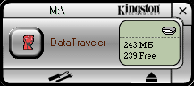 На флэшке обнаружена и еще одна программа, позволяющая малоподготовленному пользователю (о котором в последнее время все производители заботятся в наибольшей степени) несколько облегчить себе работу с ней. MyTraveler после установки умеет «всплывать» при подключении накопителя, прячась все остальное время от любопытных глаз. При помощи расположенной во всплывающем окошке кнопки, флэшдрайв можно «безопасно отключить» в одно нажатие, что несколько удобнее, чем штатные средства Windows — в их случае нужно произвести несколько большее количество телодвижений. Еще одна кнопка предназначена для изменения настроек программы.