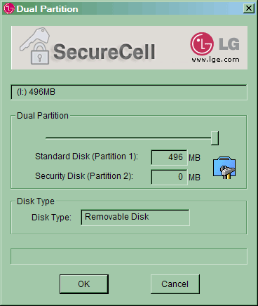 Возможности по разбиению совершенно стандартны: две части, на одну из которых при помощи того же SecureCell можно установить парольную защиту.