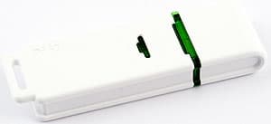 Модель практически идентична предыдущей, но предназначена в первую очередь тем, кто предпочитает светлые цвета. Здесь уже цвет корпуса белый без вставок (светодиод остался прежним), причем предусмотрено «ушко» для ношения устройства на шее или на брелке с ключами (о креплении его придется позаботиться самостоятельно). И размеры чуть больше — 59×18,2×7,9 мм при массе около 8 грамм.