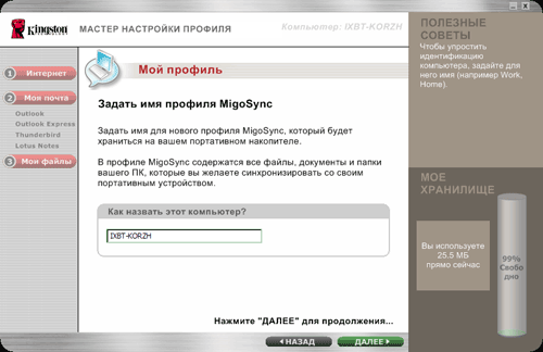 Начиная работу с новым для накопителя компьютером, следует создать для него профиль. По умолчанию именем последнего является имя компьютера, однако это можно и изменить при желании.