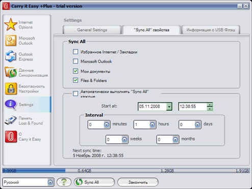 Вторая страница настраивает «Sync All». Видно, что провести полную синхронизацию всего (степень ее полноты, впрочем, настраивается именно пользователем) можно не только при помощи кнопки в окне программы, но и делать ее по расписанию.