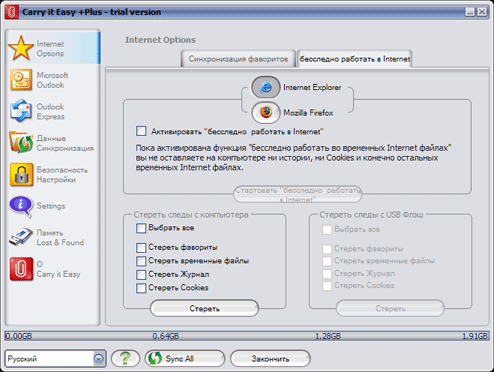Еще одной крайне полезной опцией является режим «Бесследной работы в Internet», особенно актуальный, когда для доступа к сети нужно воспользоваться чужим компьютером. Конечно, все это можно почистить и вручную, но зачем? Компьютеры как раз и придуманы для выполнения рутинных операций.