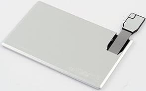 В этом плане идея, пришедшая в голову конструкторам PQI, гениальна и, как все гениальное, проста! Можно сделать тонкий флэш-накопитель? Можно — ведь это не винчестер. Достаточно посмотреть на карты microSDHC с их миниатюрными размерами и толщиной всего в 1 мм. Правда, они имеют достаточно невысокую емкость и высокую удельную стоимость, но ведь нам не требуется делать накопитель маленьким по всем направлениям — важна толщина. А длину и ширину сделаем такими же, как у обычной пластиковой карты. Как их с собой носить — понятно всем: популярность этого средства платежа (и не только) давно привела к наличию специальных отсеков в кошельках, бумажниках и прочих аксессуарах. А USB-разъем необязательно делать «постоянно готовым» к эксплуатации — его можно прятать в корпус. Так и появилась на свет линейка PQI Card Drive.