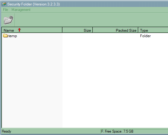 Восьмая кнопка предоставляет альтернативные возможности защиты файлов от несанкционированного доступа и работает только в том случае, когда на накопителе нет закрытого паролем раздела. Она создает специальную папку, доступ к которой можно ограничить паролем, и обеспечивает с ней интерфейс, сходный с Windows Explorer. Для регулярного использования, конечно, специальный раздел удобнее — он более прозрачен для программного обеспечения, но для эпизодического применения Security Folder полезен, поскольку не заставляет разбивать накопитель на части, а позволяет продолжать использовать на нем всего один раздел, равный размеру всего устройства.