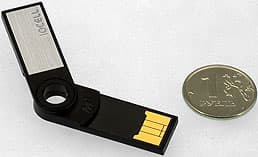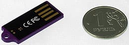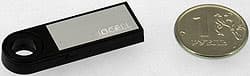 Очень маленькая флэшка, что давно уже стало модным веянием. Ее размеры составляют всего лишь 42,2×12,2×5,1 мм, а масса — 3 грамма. Конструкция — раскладная. Емкость относительно невелика, но для таких габаритов и не маленькая — 4, 8 или 16 ГБ флэш-памяти. Заявленные скоростные характеристики — 28-32 МБ/с при чтении и 7-12 МБ/с при записи данных. Чтоб такую «фитюльку» не потерять, к ней можно прикрепить входящий в комплект короткий шнурок, а потом куда-нибудь привесить за него. В общем, накопитель интересен как минимум поборникам миниатюризации.