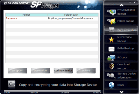 Минусом описанных выше операций является то, что при их выполнении файлы никак не защищаются от постороннего доступа, а ведь флэшка может быть утеряна или украдена. Если вас не устраивает то, что «нашедший» сможет прочитать ваши документы, их имеет смысл не просто копировать, а шифровать на лету, что делает третья кнопка панели.