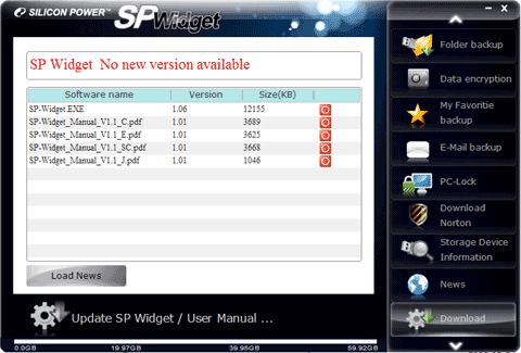 Ранее компания Silicon Power поставляла подавляющее большинство накопителей исключительно «голыми», т. е. без какого-либо дополнительного ПО. Теперь же эта «несправедливость» исправлена — владелец любого флэшдрайва или ВЖД с этой маркой может скачать с сайта утилиту SP Widget, по функциональности сильно напоминающую CoSoSys CarryItEasy+, также предлагаемую многими производителями флэшек по лицензии (например, специальная версия для Transcend носит название JetFlash Elite). Однако, несмотря на это сходство, утилита производит впечатление оригинального продукта, да и выглядит совсем по-другому.