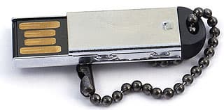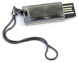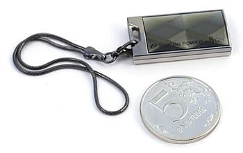 Если же нужно что-то еще более привлекательное внешне или просто более емкое, то можно обратить внимание на следующую модель в линейке. 850 имеет уже более традиционный дизайн с выдвижным разъемом, но тоже компактный: 31,6×16,4×6 мм при массе 6,1 грамма. Увеличение размеров позволило вместить в старшую модификацию уже до 32 ГБ, в остальном же емкостной ряд такой же, как у 830 (мы тестировали флэшку на 8 ГБ). И дизайнеры отдельным корпусом распорядились как надо: он остался металлическим, но на одну из сторон помещена «кристалловидная» накладка. У нас сразу возникли ассоциации с коммуникатором HTC Touch Diamond, где к аналогичному элементу украшения на задней стенке не раз предъявлялись нарекания — быстро стирались выступающие углы, так что внешний вид становился непрезентабельным. Пока сложно сказать — будет ли данная проблема присуща флэшке. Возможно, что нет — она сама по себе меньше и легче, так что вряд ли будет сильно тереться об соседние поверхности (к тому же, одна сторона корпуса это совсем не то же самое, что задняя сторона корпуса мобильника, на которой он обычно и лежит). Окончательный ответ на вопрос появится только после того, как накопитель поступит в массовую продажу и им успеет попользоваться большое количество покупателей (в данном случае, скорее, покупательниц), ну а пока же можно констатировать факт, что в обоих цветовых исполнениях (и серо-стальном, и желотоватом) выглядит он очень эффектно. Кажется, даже, что дизайнеры несколько ошиблись с комплектными аксессуарами: короткий металлический же плетеный шнурок смотрится очень хорошо и в духе самого устройства, однако стоило ориентироваться на то, что флэшку будут носить в качестве кулончика или подобного украшения (как, например, Pretec i-Disk Bella II. Ну а как это работает при использовании по прямому назначению, покажут тесты, к которым мы и переходим.