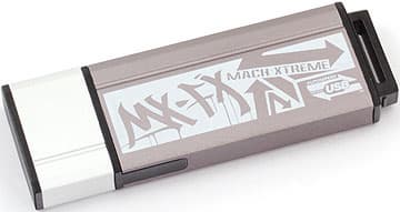Накопители серии MX-FX компании Mach Xtreme внешне — совершенно обычные флэшдрайвы. Правда достаточно большие — их размеры составляют 78×27×9,3 мм, а масса 39 граммов. В особенности сильно первым покупателям будет мешать ширина — все-таки пока на рынке не наблюдается завала USB-удлинителей и хабов, соответствующих третьей версии стандарта, так что подключать устройство чаще всего придется к портам на задней стенке компьютера, а там и без того много всякого понатыкано (особенно у энтузиастов, основной целевой группой пока и являющихся). К массе же накопителя серьезных претензий не будет, благо обусловлена она в основном использованием мощного алюминиевого корпуса, так что такую флэшку многие бы приобрели и при поддержке ею только устаревшего интерфейса.