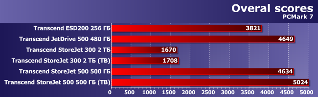 Если накопитель используется как рабочий и/или для хранения и запуска программ, для него важны результаты тестов высокого уровня. В частности, PCMark 7.