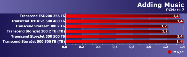 Добавление музыки в базу происходит одинаково медленно на всех накопителях и их тип не имеет почти никакого значения. Интерфейс подключения — тем более.