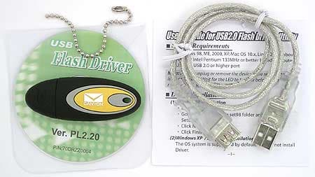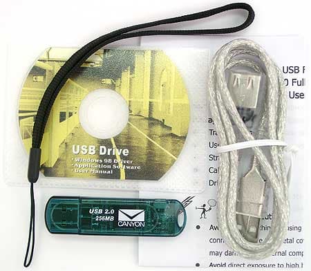 Комплект поставки прост, но достаточен для большинства применений. Сам накопитель, шнурок для его ношения на запястье, USB-удлинитель, краткая бумажная инструкция и CD-визитка с драйверами для Windows 98 и утилитами. Ничего лишнего, но все необходимое есть.