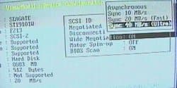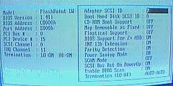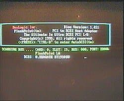 BIOS позволяет управлять как самим контроллером (назначать ему ID, выбирать загрузочные операции, поддержку CD-ROM или съемных накопителей, устанавливать поддержку SCAM (SCSI Automatic Control), и иное), так и подключенными устройствами (в том числе и выбор скорости работы HDD до 40 Мегабайт в секунду в синхронном режиме). Вход в BIOS происходит несколько иначе, чем у того же AHA2940UW — при помощи комбинации клавиш Ctrl+B. Бросается в глаза, что BIOS у Bus Logic грузится несколько дольше, чем у AHA. (Я-то думал, что у Adaptec-а самый медленный BIOS, ан нет…)