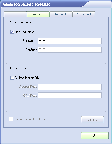 Дополнительные возможности утилиты открываются после ввода пароля устройства. В частности, это позволяет обновить прошивку сетевого накопителя, посмотреть его температуру и SMART. При необходимости ограничения доступа, можно запрограммировать специальные ключи, которые позволят получить доступ к накопителю только авторизированным клиентам. Ключей предусмотрено два — один на доступ по чтению, а второй разрешает и запись (первый в этом случае тоже нужно знать). Ключи начинают действовать только после переподключения диска с клиента. Отметим, что в поставке «из коробки» получить доступ могут все — ключей не запрограммировано.