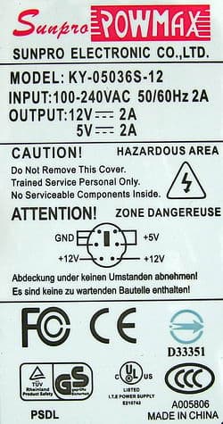 | 12 В / 1.5A 5В / 1.5A | ||