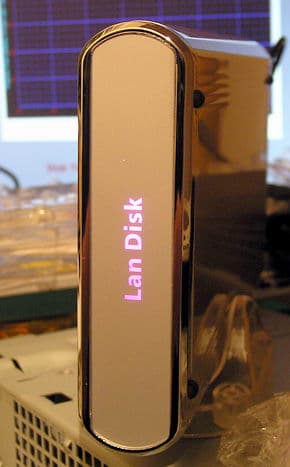 На переднем из них имеется надпись «Lan Disk» служащая индикатором питания (сапфировая подсветка при включении) и одновременно индикатором активности диска — симпатичный малиновый свет в сапфировой кайме при обращениях.