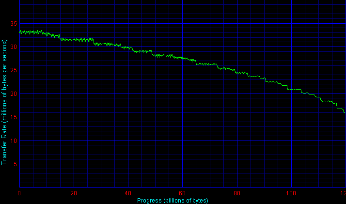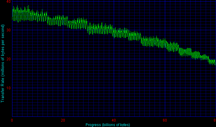 По скорости работы интерфейса у дисков Fujitsu все в пределах нормы, без рекордов, но и без провалов. Есть небольшое улучшение по сравнению с прошлой серией MHT.