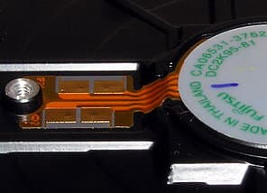 Соединение платы с гермоблоком осуществляется не прижимными (игольчатыми) контактными группами, как в настольных моделях винчестеров, а при помощи pin-панели позолоченных контактов, утопленной в корпус.
