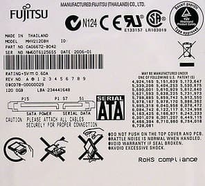 - Fujitsu MHV2120BH — 120 Гбайт с интерфейсом Serial ATA
