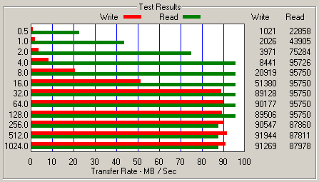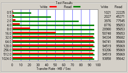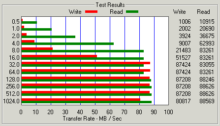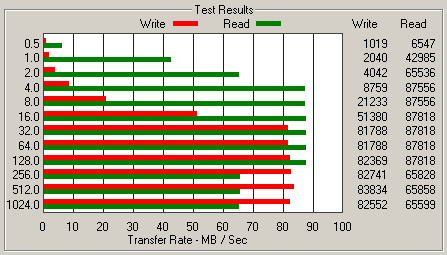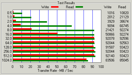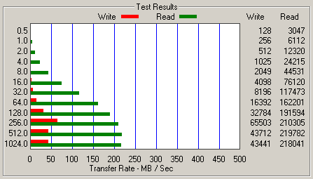 Идем дальше. Памятуя о «разночтениях» при различных способах измерения скорости работы интерфейса SCSI (см. прошлую статью) приведу как «традиционную» диаграмму с результатами тестов, дающих (как правило) лучшие результаты для ATA-интерфейса,
