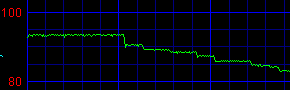 Успехи дисков Maxtor здесь, как мы помним, объяснялись достаточно просто — они используют в общем-то более прогрессивный подход к форматированию сторон магнитных пластин, чем конкуренты, — так называемое адаптивное форматирование, позволяющее «выжать» из каждой индивидуальной пластины максимум скорости при сохранении надлежащего уровня надежности. Наличие адаптивного форматирования наглядно видно, если графики скорости линейного чтения отобразить с разрешением раз в 100-1000 выше, чем это делает тест WinBench 99 (и другие) и при этом не использовать сглаживание. Аналогичное построение графика для диска Fujitsu MAU3073NP показало, что здесь тоже применяется адаптивное форматирование!