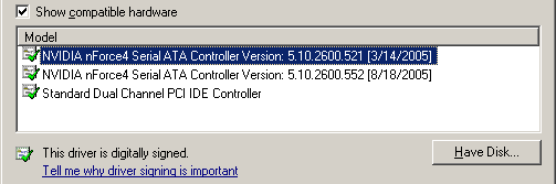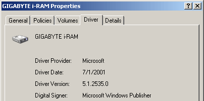 Другая проблема может быть связана с совместимостью с чипсетами NVIDIA серии nForce4. Недаром же в комплекте с i-RAM идет CD, на котором находятся только драйверы для этого чипсета, проверенные Gigabyte на совместимость с i-RAM. Впрочем, и они не помогли: после установки i-RAM в работающую систему на nForce4 мне пришлось перепробовать несколько разных драйверов для SATA-контроллера NVIDIA, включая свежие с сайта, с инсталляционного диска материнской платы и с CD самого i-RAM,
