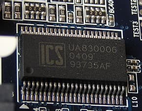 Кроме того, на плате i-RAM установлен отдельный генератор частот (PLL, Phase Locked Loop) ICS 93735AF, применяемый для памяти DDR на многих материнских платах.