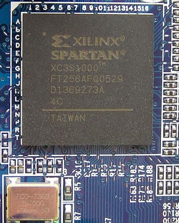 Он представляет собой достаточно дешевую микросхему ПЛИС (электрически программируемой логики) XC3S1000-FT256 серии Spartan-3 от Xilinx, производимую, кстати, по 90-нанометровой технологии.