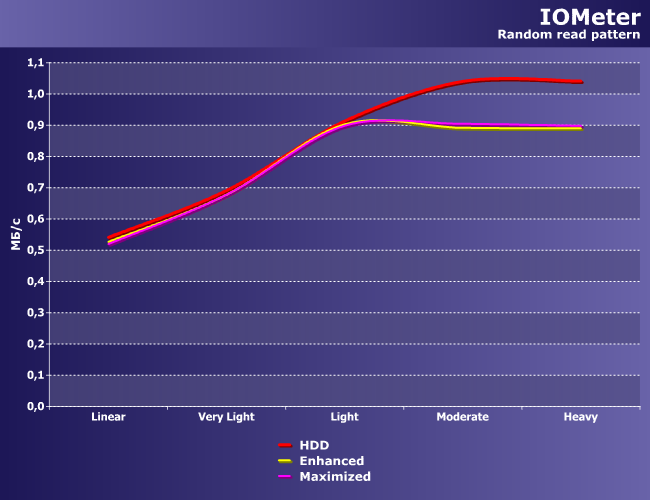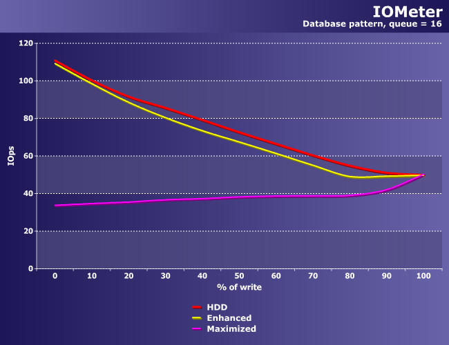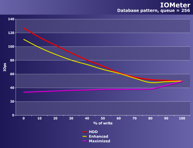 Что особенно отчетливо наблюдается в шаблонах баз данных, где Enhanced не дает ничего (почти ничего — немного, все же, скорость падает), а Maximized умудряется замедлить винчестер (хотя, казалось бы, куда уж дальше). Впрочем, как раз при большой доле операций записи все варианты приходят к общему знаменателю, так что это немного другая проблема — слишком запутанные алгоритмы.