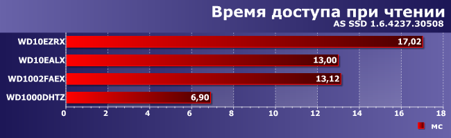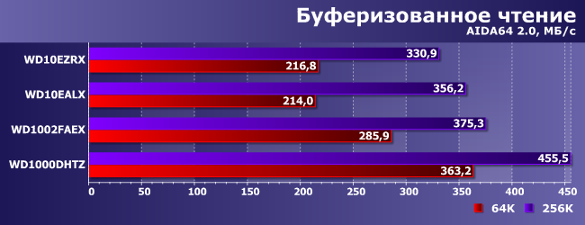 Как мы уже писали, со скоростью обмена данными с буфером диска у Western Digital все в порядке. Но чуть по-разному — как и следовало ожидать, электроника в VelociRaptor отличается от его собратьев заметно. А вот все они на примерно одинаковом неплохом уровне.