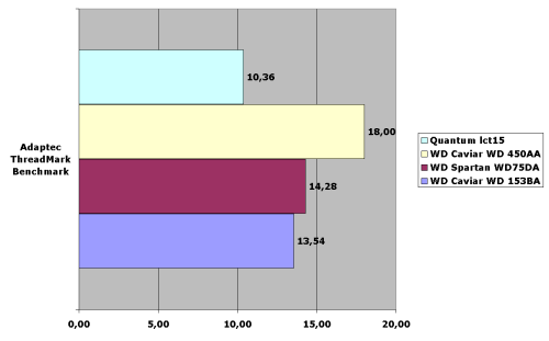 Как видим, по скорости обмена WD Spartan все-таки не дотягивает до Seagate U10, хотя и опережает Quantum lct15. Собственно, этого и не обещали, обещали выигрыш в тестах высокого уровня. Зато появился лидер — WD450AA. Что любопытно, скорость обмена у этого диска даже больше, чем у WD153BA! Так, а что у нас в WinMarks?