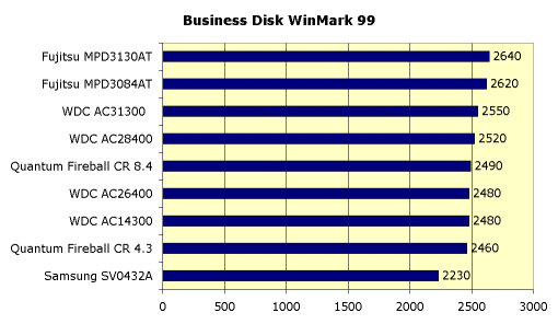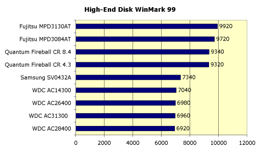 Итак, WinBench 99. К сожалению, для обеспечения «обратной совместимости с протестированными ранее моделями», результаты приведены в несколько усеченном виде.