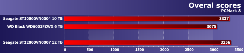 Для винчестеров емкостью от 4 ТБ (не говоря уже о 10 ТБ и более) результаты высокоуровневых «системных» тестов имеют в основном теоретическое значение — мало кто на практике будет использовать такое устройство в роли основного и единственного накопителя в компьютере. Но, тем не менее, взглянуть на них интересно хотя бы с этой точки зрения. Тем более, что и «не единственный» винчестер легко может столкнуться с подобным сценарием: при наличии в системе не слишком емкого SSD, например, какие-то объемистые программы, вполне возможно, будут устанавливаться на винчестер и запускаться с него. Не говоря уже о рабочих данных.