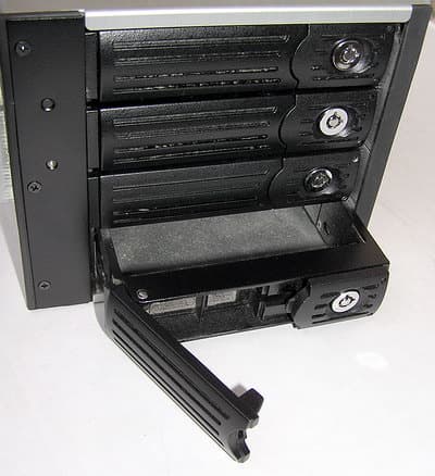 Понятно, что в серверах и профессиональных системах хранения данных вопросу охлаждения жестких дисков уделяется особое внимание — диски расположены в специальных металлических корзинах и принудительно обдуваются вентиляторами. Опыт эксплуатации дисков в таких корзинах показывает, что даже при интенсивной нагрузке их температура находится в пределах 30-40 градусов (а порой и вообще близка к комнатной), что гонит прочь беспокойство по поводу их перегрева.