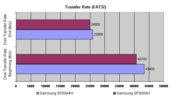 Собственно, изменений быть не должно. То, что результат обновленной модели 40-гигабайтного диска лучше, свидетельствует скорее о недостатке предыдущего тестируемого экземпляра. Прочие результаты для дисков объемом 40 и 80 гигабайт практически совпадают, поэтому, дабы не загромождать обзор, ограничусь «старшим братом»
