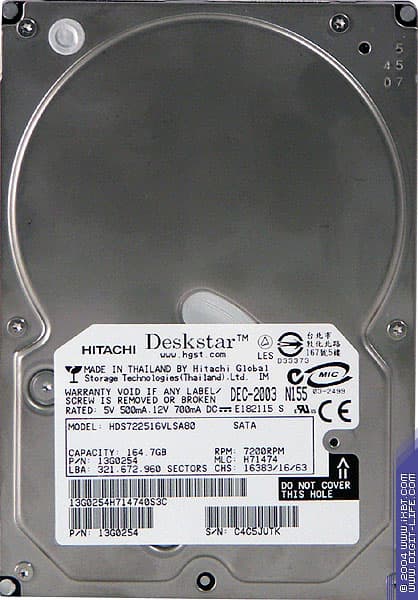 Hitachi Deskstar 7K250 HDS722516VLSA80