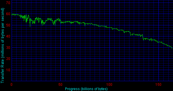 На внешний вид (нет явно выраженных ступеней) графика скорости линейного чтения двухпластинного диска, видимо, оказывают влияние помехи самой системы, так как, по информации Hitachi не используют адаптивное форматирование для настольных жестких дисков. Заметим, что ступени достаточно хорошо просматривается на графике для диска с единственной пластиной.