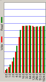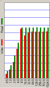 В последнем случае все остальные компоненты системы были теми же, что и c платой ABIT IC7-G, поэтому мы можем рассчитывать на совместимость результатов и попробовать оценить возможные преимущества от использования более высокоскоростного интерфейса Serial ATA 300 Мбайт/с при переходе c шины PCI на более высокоскоростную и более подходящую такому интерфейсу шину PCI-X (или PCI64). А из сравнения результатов диска T7K250 для контроллеров ICH5 и SiI3124 на скорости 1,5 Гбит/с мы можем попытаться определить выгоду от использования Native Command Queuing.