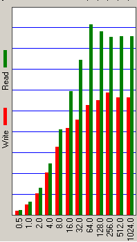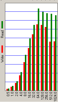 В целом, если судить по этому тесту, оптимизация firmware дисков IBM/Hitachi для чтения и записи файлов блоками разного размера за три поколения (7K250, 7K400, T7K250) не претерпела кардинальных изменений — графики для дисков с SATA-контроллером моста ICH5 весьма похожи. Впрочем, положительные изменения у Vancouver 4 по сравнению с предшественниками все же есть: