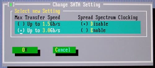 а также выбирать режим размывания спектра интерфейса SATA. После пары предупреждений