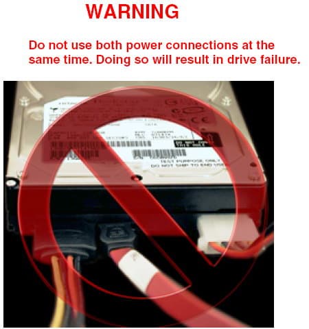 Полезной особенностью контроллеров SATA-дисков Hitachi является использование не только стандартного SATA-разъема питания, но и прежнего IDE-шного (типа 4-контактного Molex):