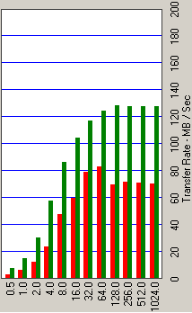 Если же сравнивать работы диска на контроллере SiI3124-2 при разных скоростях интерфейса SATA и шины PCI, то становится очевидным, что применение высокоскоростной шины PCI-X (и PCI64) только играет на руку эффективному кэшированию файлов как при чтении, так и при записи, тогда как на «обычной» шине PCI 32 бит/33 МГц выгода от эффективного кэширования диском файлов на чтение и запись существенно падает (даже ниже уровня ICH5) и разница между двумя скоростями интерфейса SATA практически незаметна (все лимитируется шиной PCI).