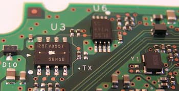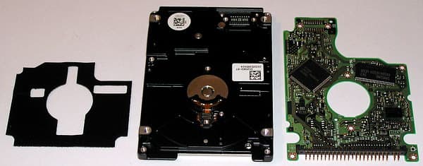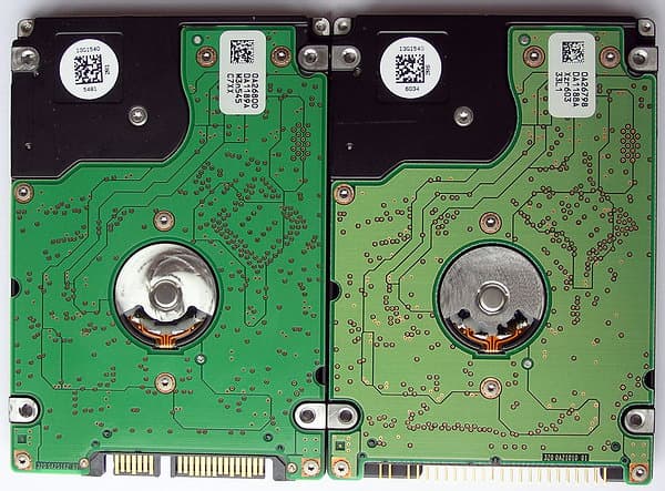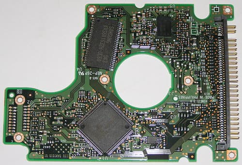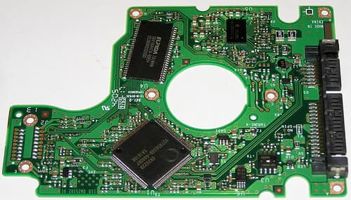 Кстати, печатные платы у контроллеров таких дисков очень тонкие — всего 0,6 мм в толщину (с маской), хотя при этом и многослойные — как минимум, три слоя металлизации. А между платой и корпусом есть мягкая изолирующая прокладка.